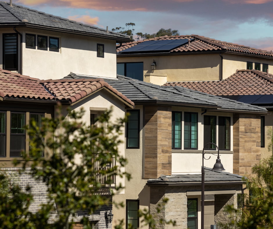 Sanborn Blend’s seamless mixture of terracotta and brownish tans pairs wonderfully with a variety of creams, warm chestnuts and relaxing blues. Whether you’re going for a contemporary look with a hint of antique charm or opting for a more traditional Mediterranean presence, this concrete roof tile is the way to go. Get inspired by checking out the color schemes we have put together for you below.
